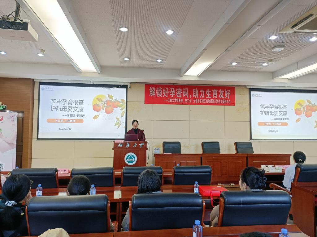 2025年11月19日下午,江南大学“解锁好孕密码,助力生育友好”主题活动在文浩馆313会议室温情启幕。本次活动由校医院、校工会联合滨湖区妇幼保健计划生育服务中心共同主办,全校100余名教职工代表参会。